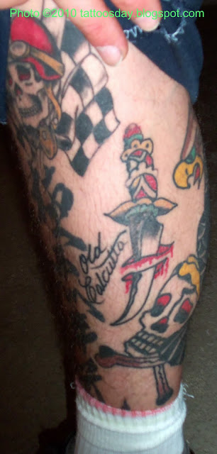 I know you're likely thinking, "Nice story, Bill, but is it really that much of a small world coincidence?" Actually, yes, because my backlog had brought me to posting a couple of tattoos on Peter, who I had last seen at the Matty No Times benefit back on July 17. One of those tattoos, you guessed it, is by Mike Perfetto.